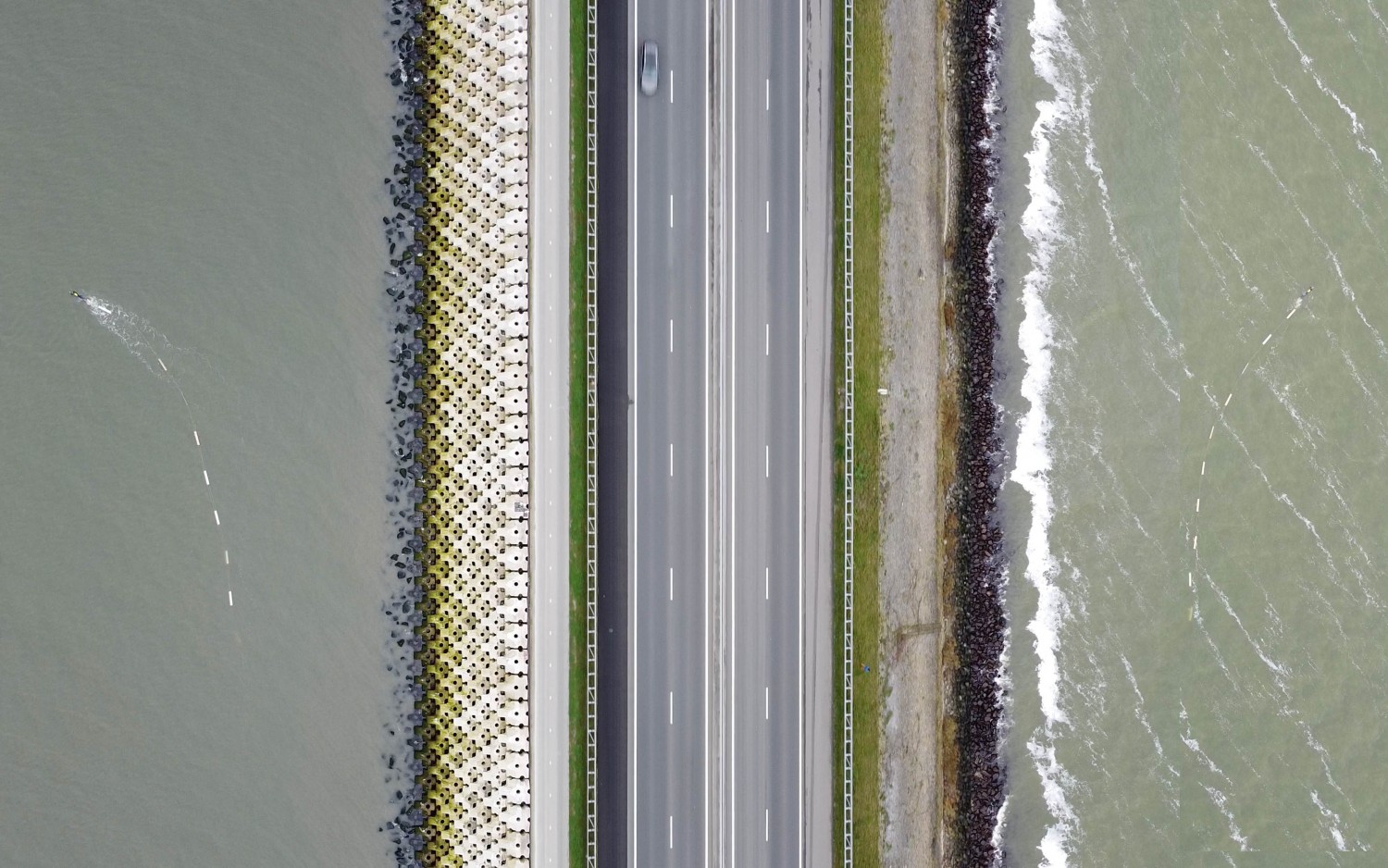 Twenty-three million cubic metres of earth were shifted by 10,000 bodies, erecting a seawall (the Afsluitdijk) and saving human lives. This division of the North Sea led to the death of an ecosystem, transforming the Zuiderzee into the Ijselmeer: now a body of fresh water. In the face of rising oceans, the Dutch water board has realised that land will have to be ceded back to the sea – the Afsluitdijk is becoming a site of negotiation.
