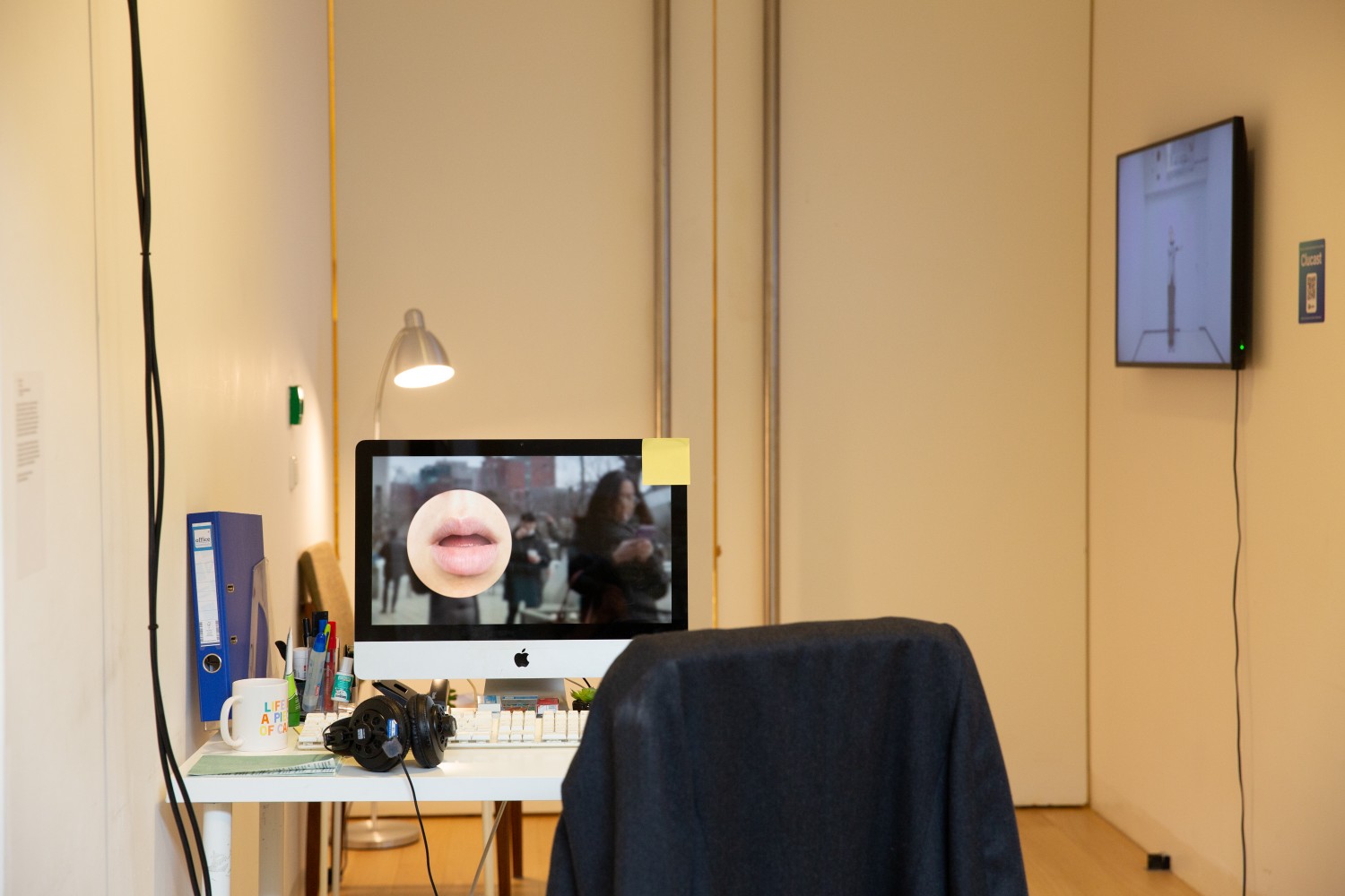Enzy Jhang, Talent Coordinator is a multimedia installation that explores experiences of cultural dislocation and the formation of identity. Living between South Korea and the Netherlands, and unable to fully incorporate herself in either place, the artist’s characters become a way to escape from the discrimination she experienced. Societal expectations and pressures drive the formation of these characters.
