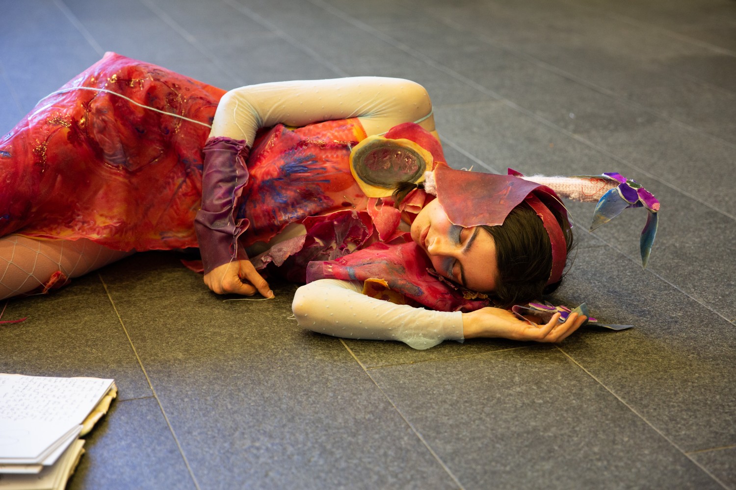 Leaking Dreams and Fleeing Realities depicts two worlds: the world of images, which is overwhelming and inexhaustible, and the corporeal world in which our bodies live. These two worlds leak into each other: the image-world lives in ourselves, even in our bodies. We dream about it. In this work, I search for a place in between; I feel the need to set boundaries. Hopefully, we can find refuge here, together.