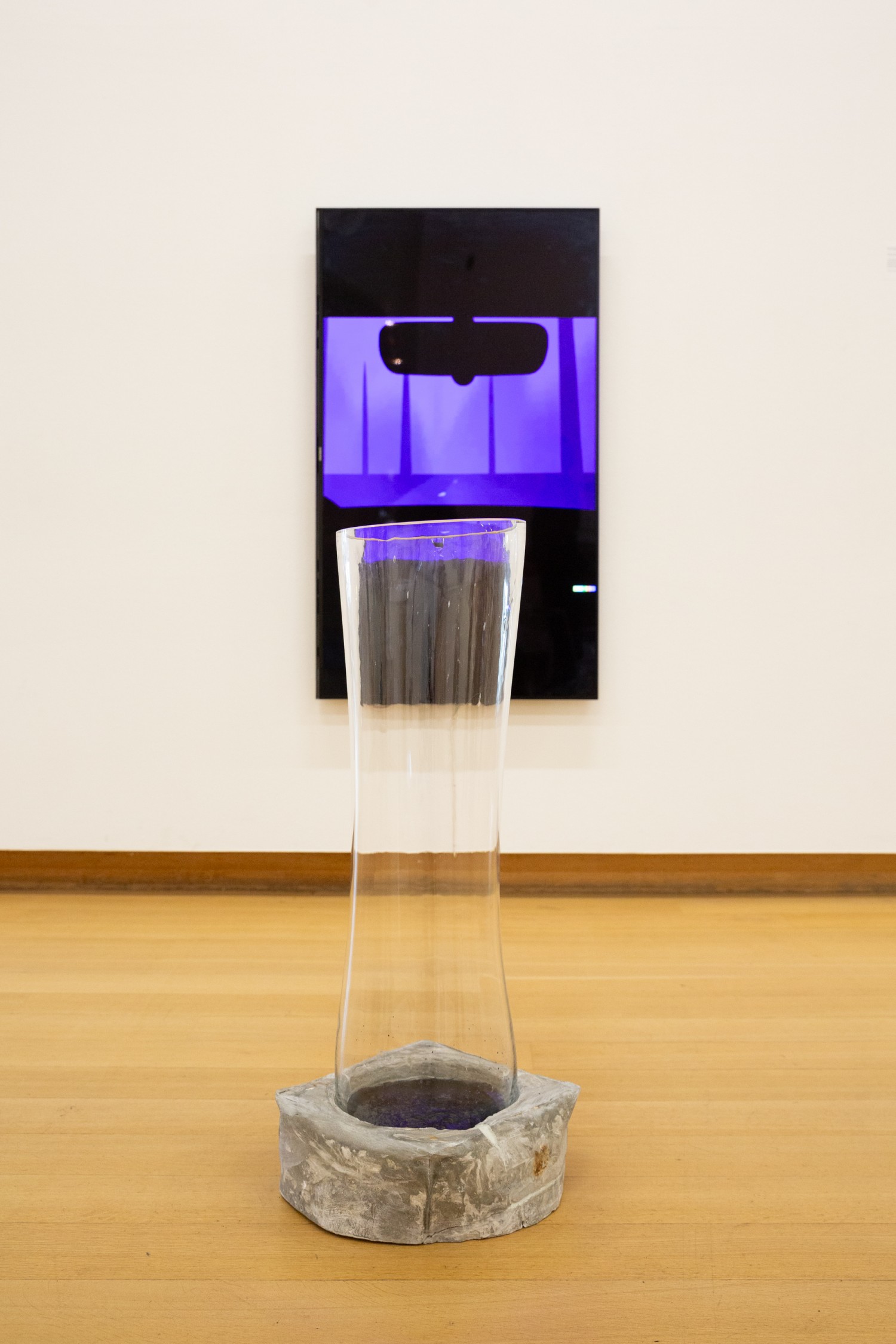 Video (3 min 42 sec) and blown glass, thickening agent, water, petrol